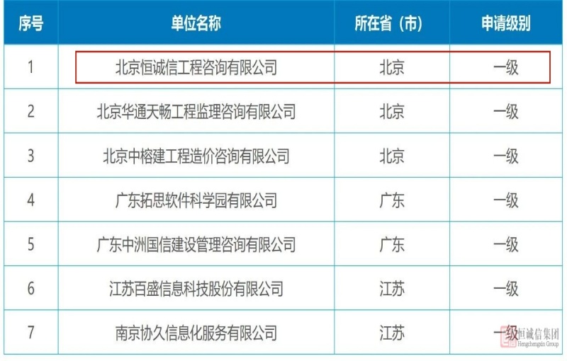 實力認(rèn)證 | 恒誠信斬獲軟件造價評估一級資質(zhì)