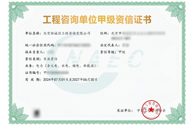 近日,中國工程咨詢協(xié)會公布了2024年第一批次工程咨詢單位甲級資信評價結(jié)果,北京恒誠信工程咨詢有限公司順利通過評價,榮獲電力專業(yè)工程咨詢甲級資信。