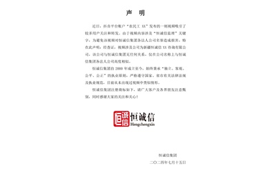 關(guān)于抖音平臺某視頻涉及“恒誠信監(jiān)理”關(guān)鍵字的聲明